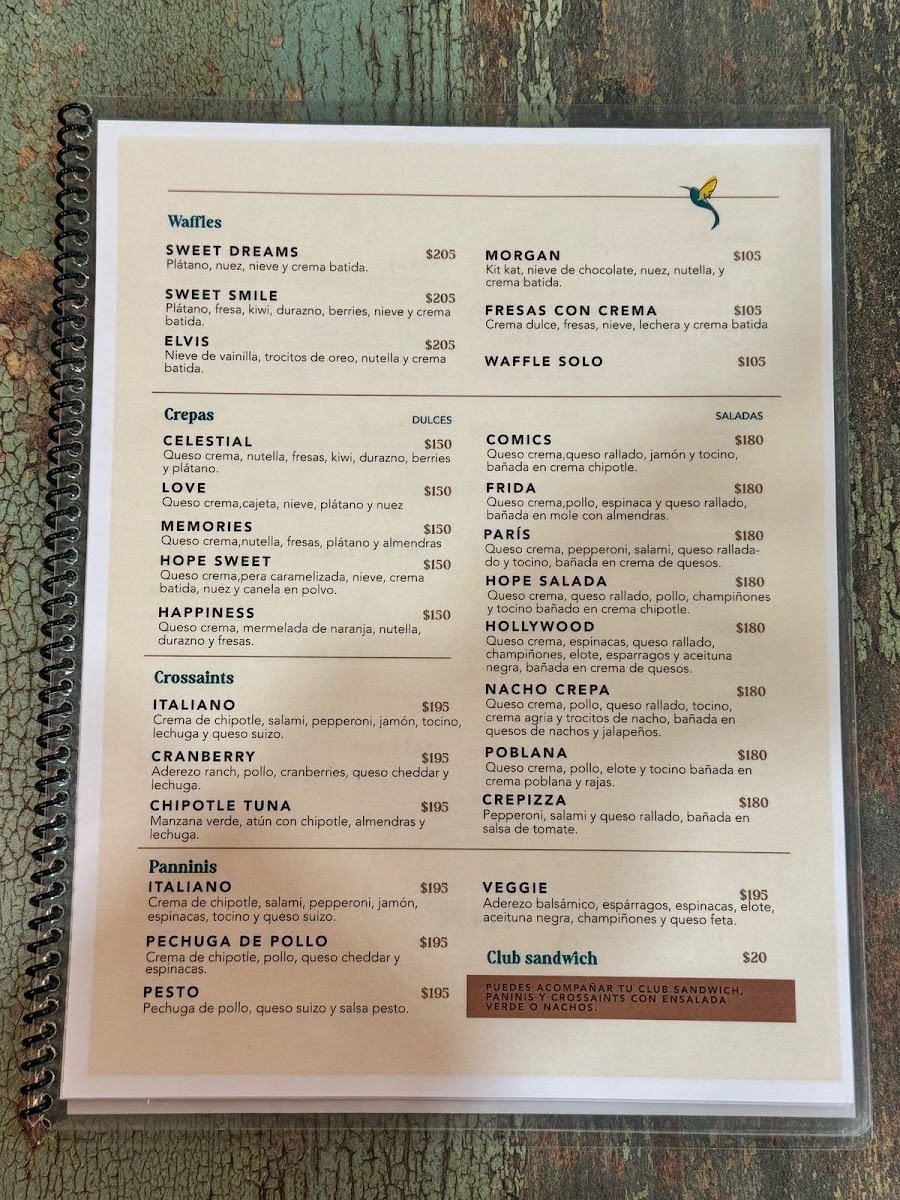 Hope Cafe and Creperie Menu
